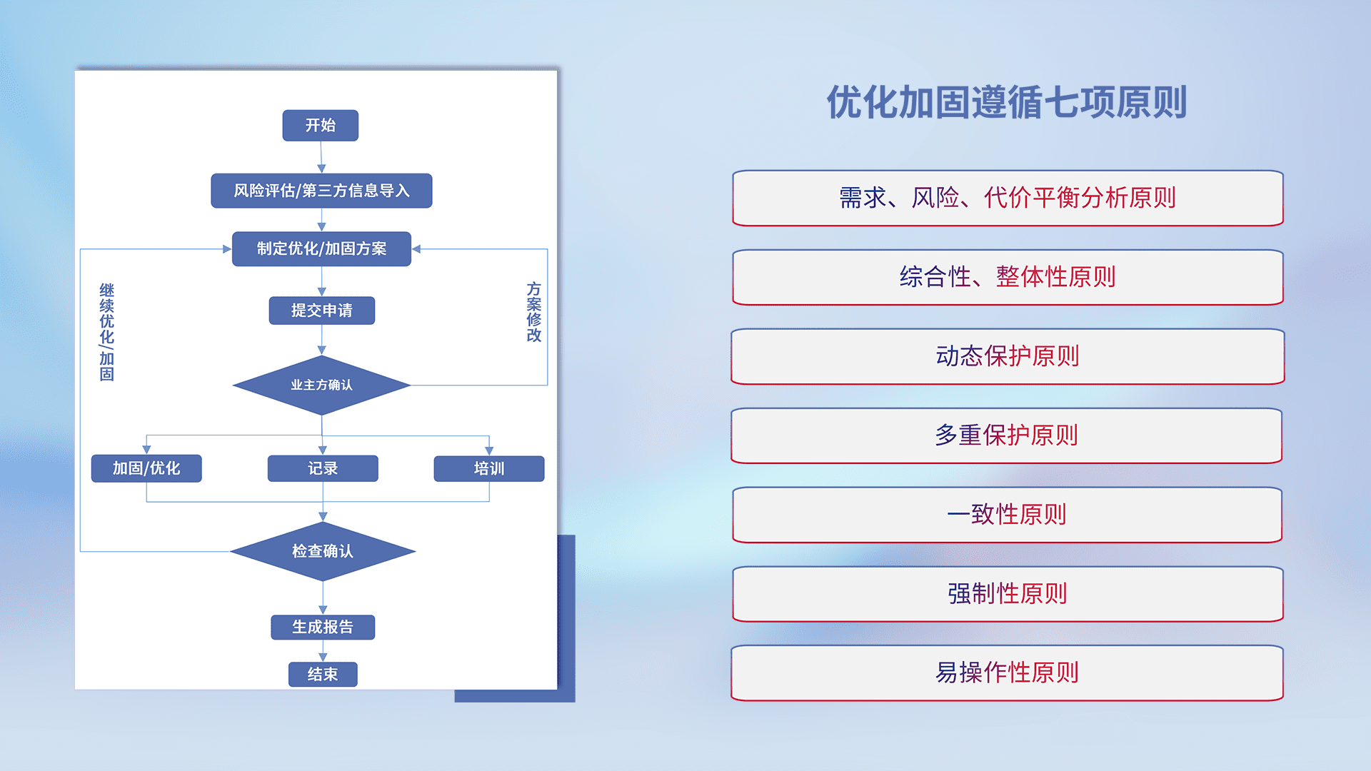 最大程度利用现有资产,,,对评估发现的问题进行封堵与整改,,防止漏洞被利用,,,提升整体网络安全性,,为客户带来高标准的优化加固服务。。
